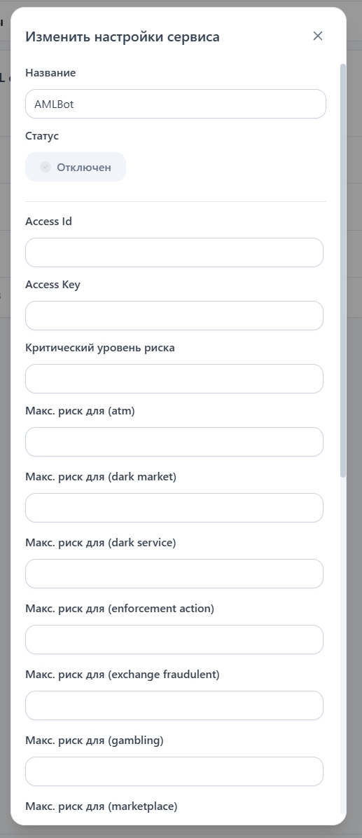 Чтобы получить API ключи, свяжитесь со службой поддержки AMLBot.com.