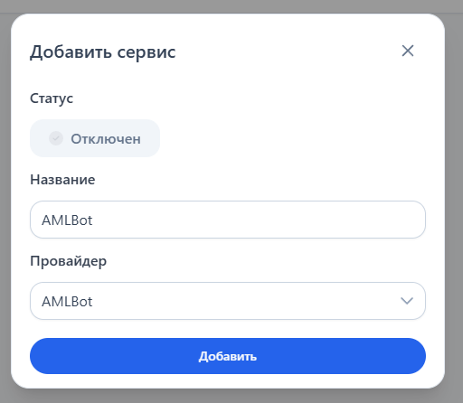 В панели управления откройте раздел "Утилиты — AML Сервисы" и нажмите кнопку "Добавить сервис"