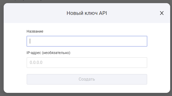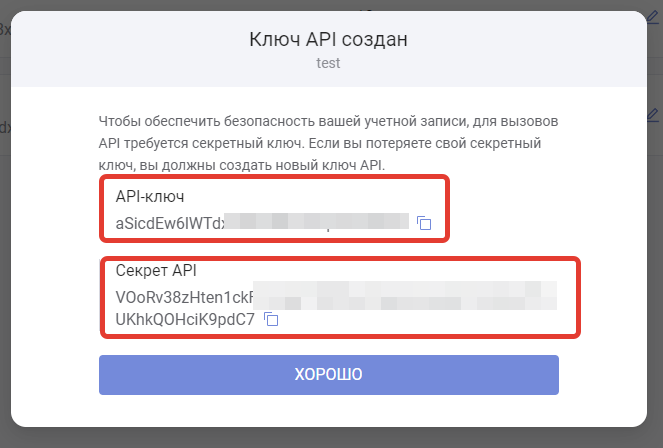 Нажмите "**Создать**" и скопируйте полученные ключи
