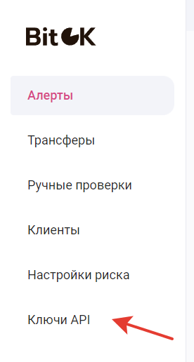 2. Перейдите в раздел **"Ключи API"**.&#x20;