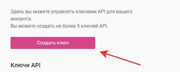 Если на открывшейся странице нет ключей, нажмите кнопку **"Создать ключ"**