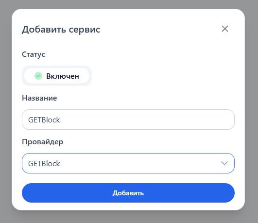 В панели управления откройте раздел "Утилиты — AML Сервисы" и нажмите кнопку "Добавить сервис"