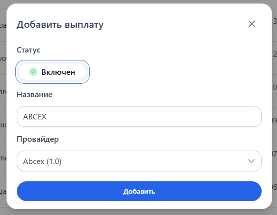 В панели управления откройте раздел "Мерчанты и API — Список автовыплат", и справа в углу нажмите кнопку "Добавить мерчант"