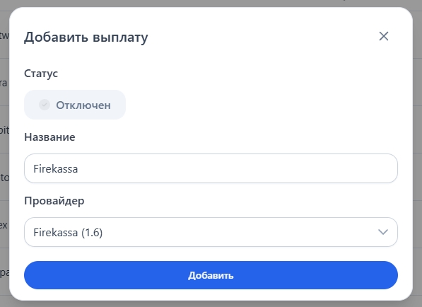 В панели управления откройте раздел "Мерчанты и API — Список автовыплат", и справа в углу нажмите кнопку "Добавить выплату"