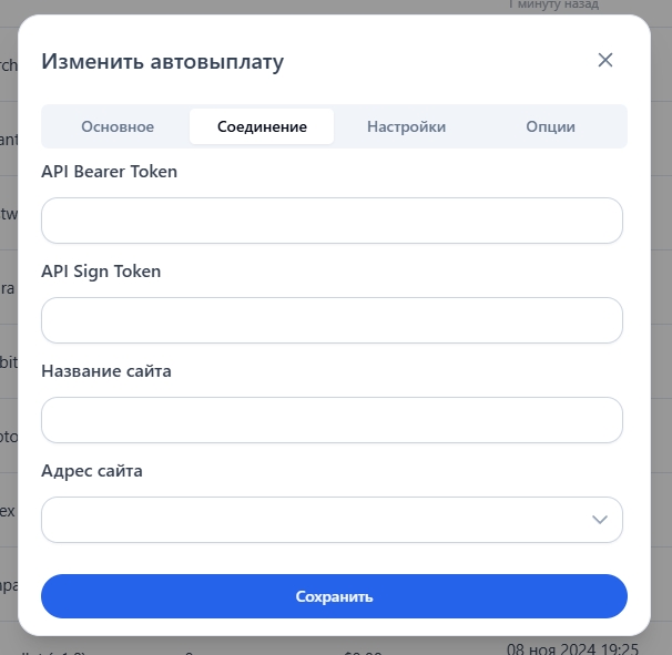 Настройка автовыплат