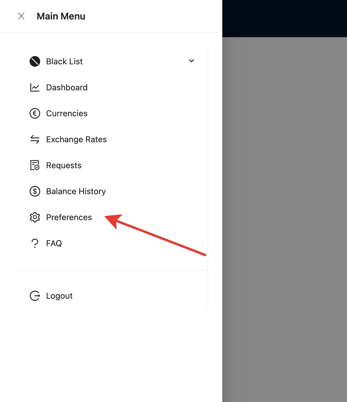 После получения доступа к личному кабинете GoldEx, нажмите на меню и перейдите в раздел "Preferences"