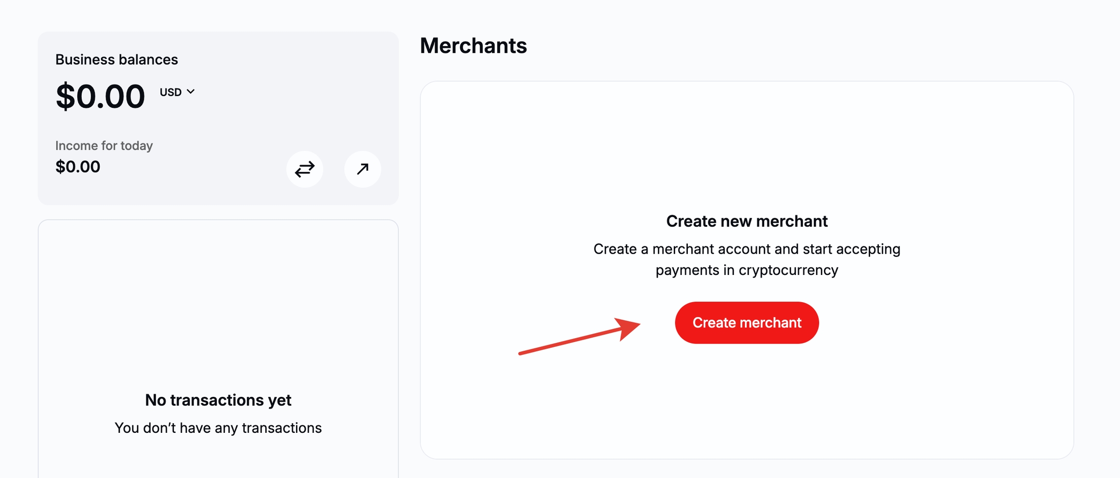 На открывшейся окне, укажите название мерчанта и нажмите "Create merchant"
