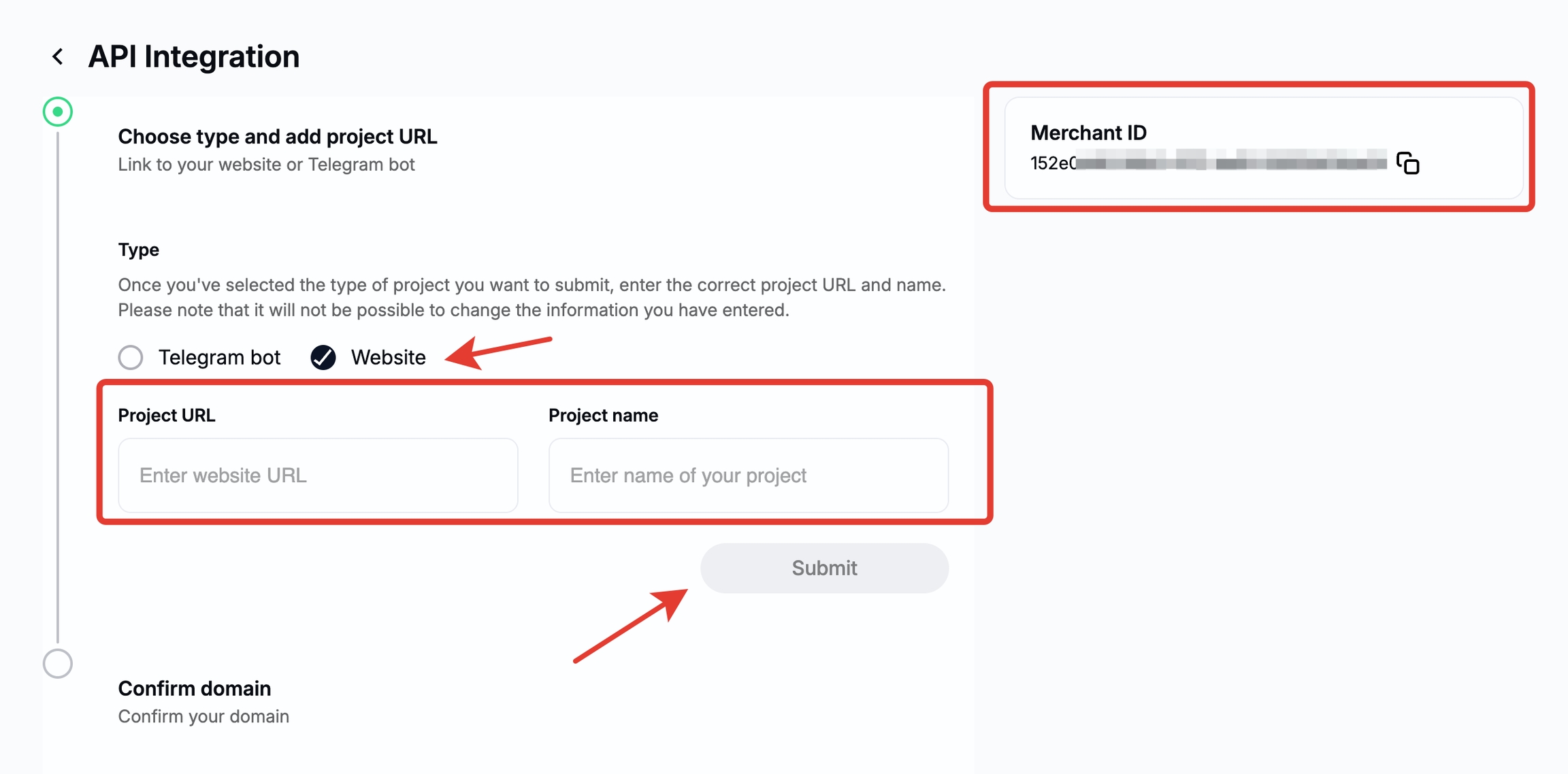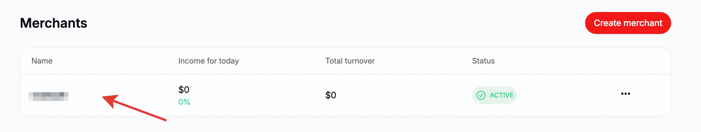 Перейдите к настройкам созданного мерчанта, чтобы получить ключи