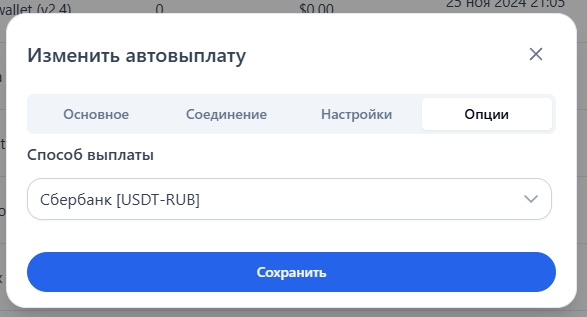 Способ выплаты — доступные варианты выплат (при выплате происходит конвертация с вашего счета у мерчанта из USDT в RUB по рыночному курсу)