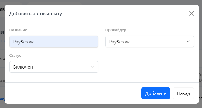## Настройка автовыплат
