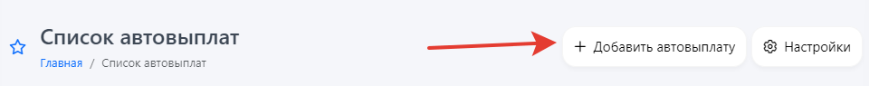 В панели управления откройте раздел **"Мерчанты и автовыплаты — Список автовыплат"**, и справа в углу нажмите кнопку **"Добавить автовыплату"**