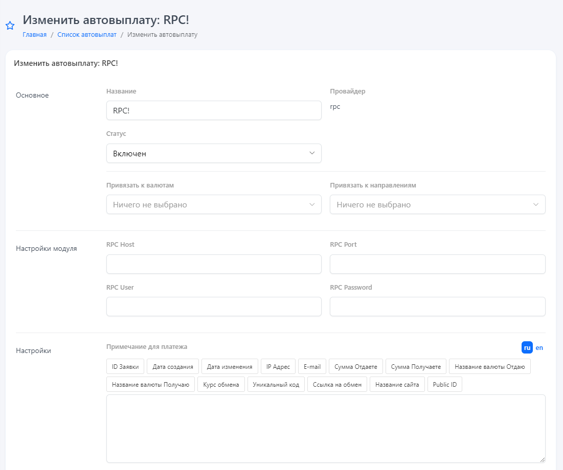 Общие настройки автовыплатПоследнее обновление