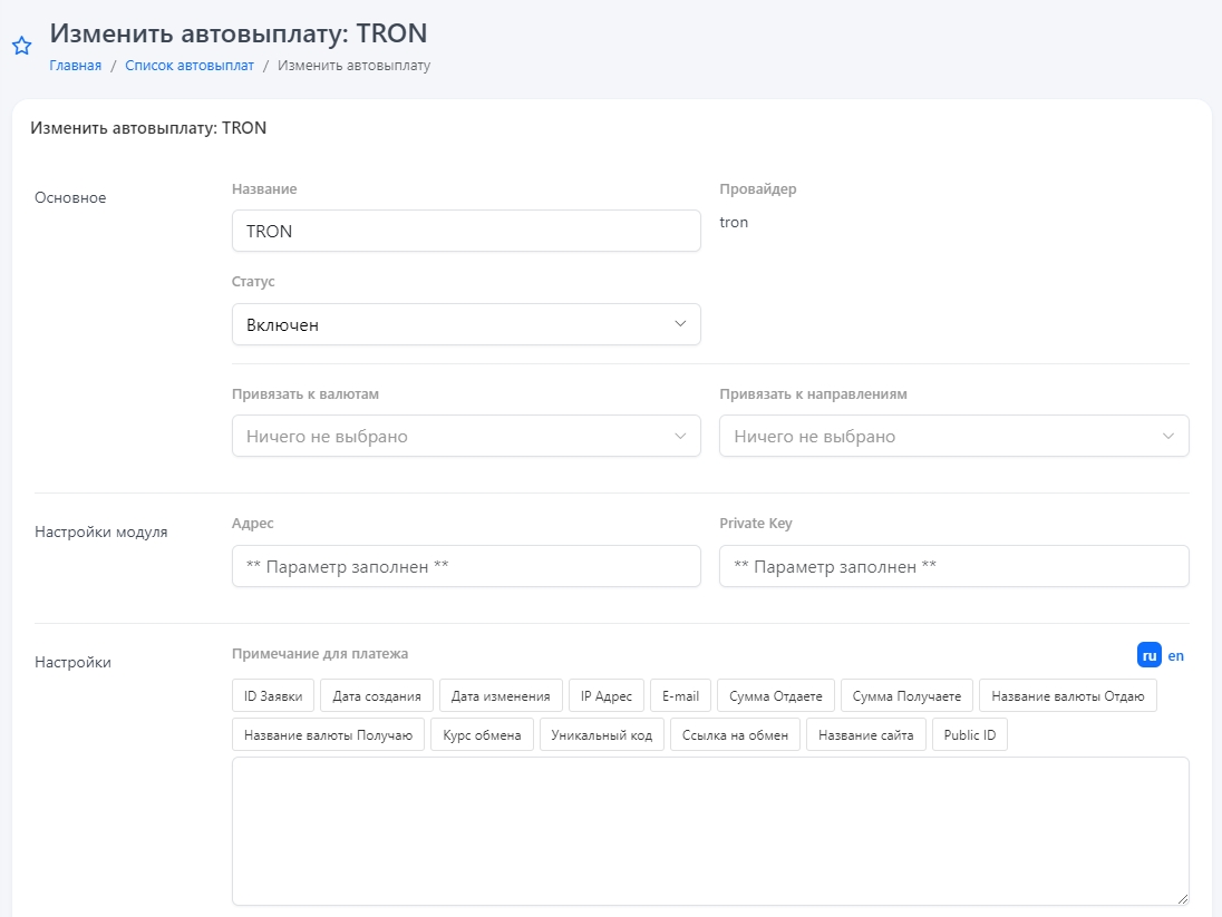 Настройка автовыплат