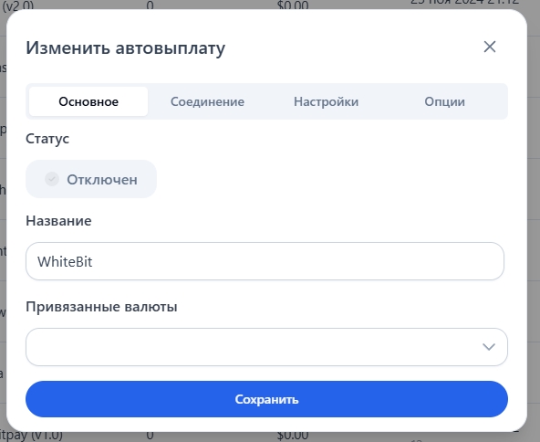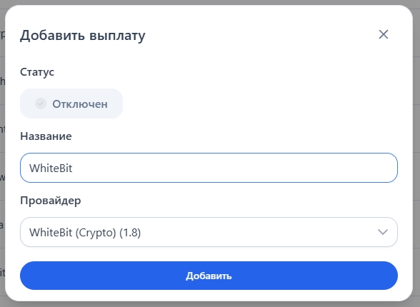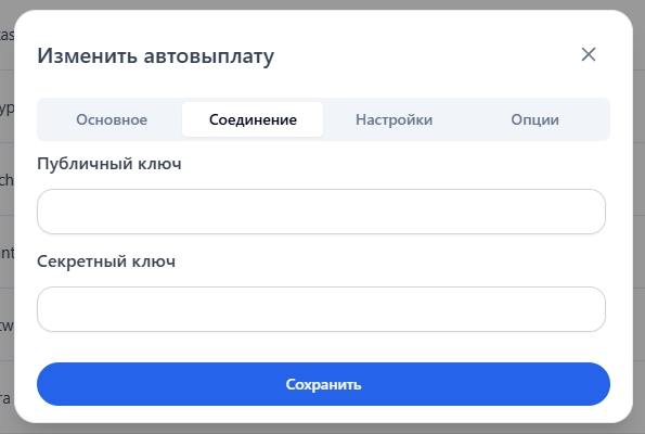 В панели управления откройте раздел "Мерчанты и API — Список автовыплат", и справа в углу нажмите кнопку "Добавить выплату"
