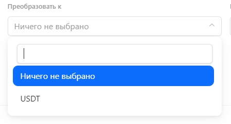 Преобразовать к — выберите валюту в которую хотите конвертировать средства после их получения