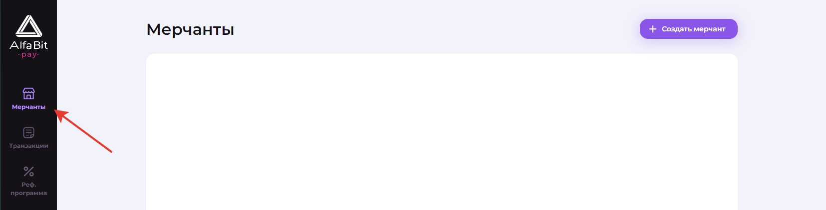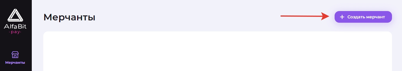 Для создания мерчанта, нажмите на кнопку "Создать мерчант"