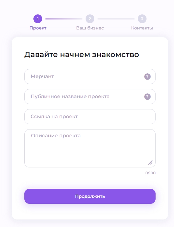 Откройте раздел "Мерчанты" и перейдите к созданному проекту нажав на название.