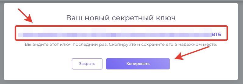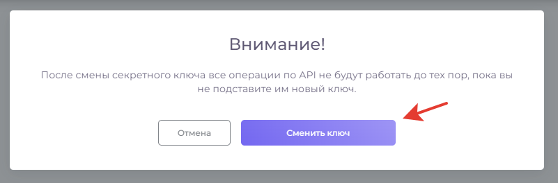 После нажатия, откроется окно со сброса ключа, подтвердите нажав на **"Сменить ключ"**