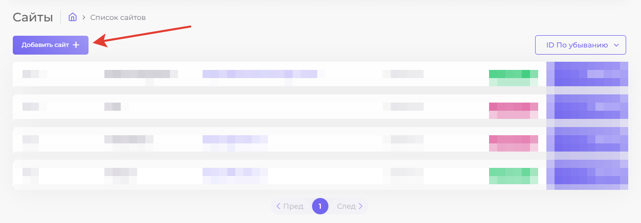 На открывшейся странице, нажмите кнопку **"Добавить сайт"**