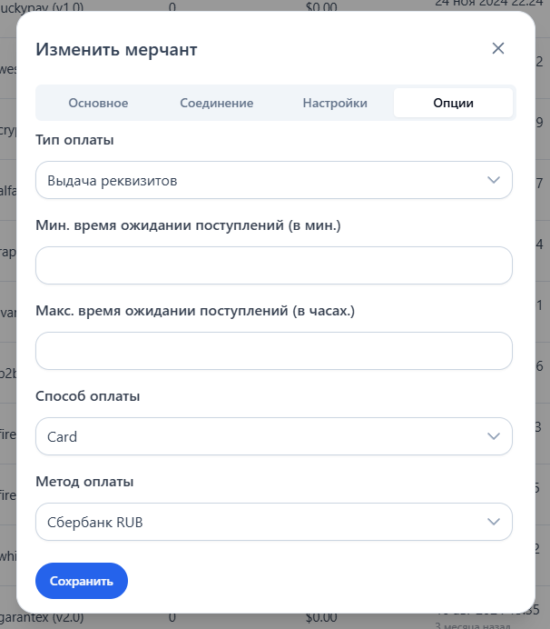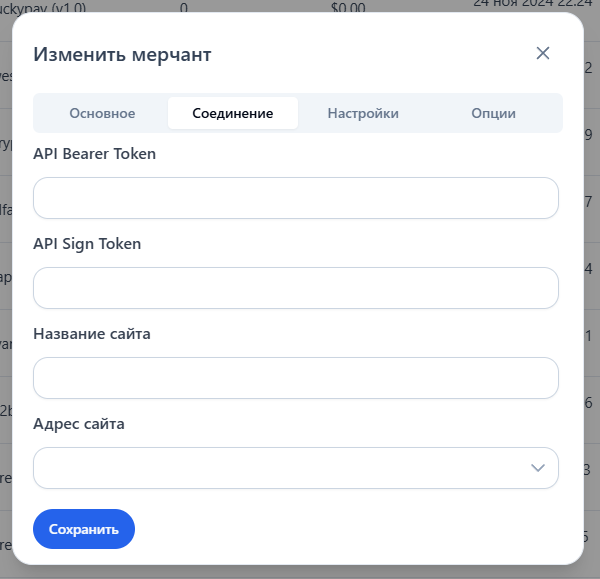 ## Настройка мерчанта