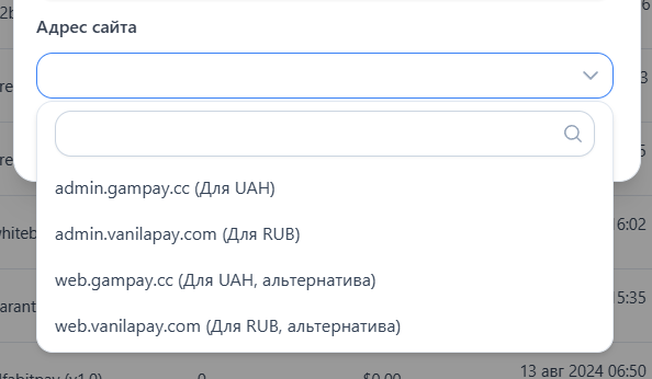 * **<https://admin.gampay.cc>** — для UAH (альтернативный URL - **<https://web.gampay.cc>)**