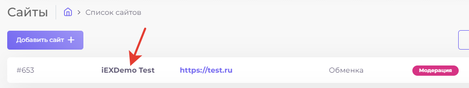 Зайдите в личный кабинет, раздел **"Сайты — Список сайтов"**