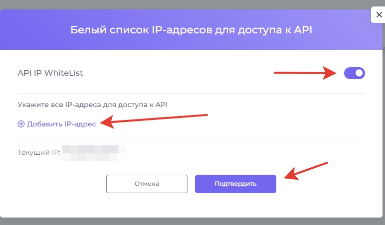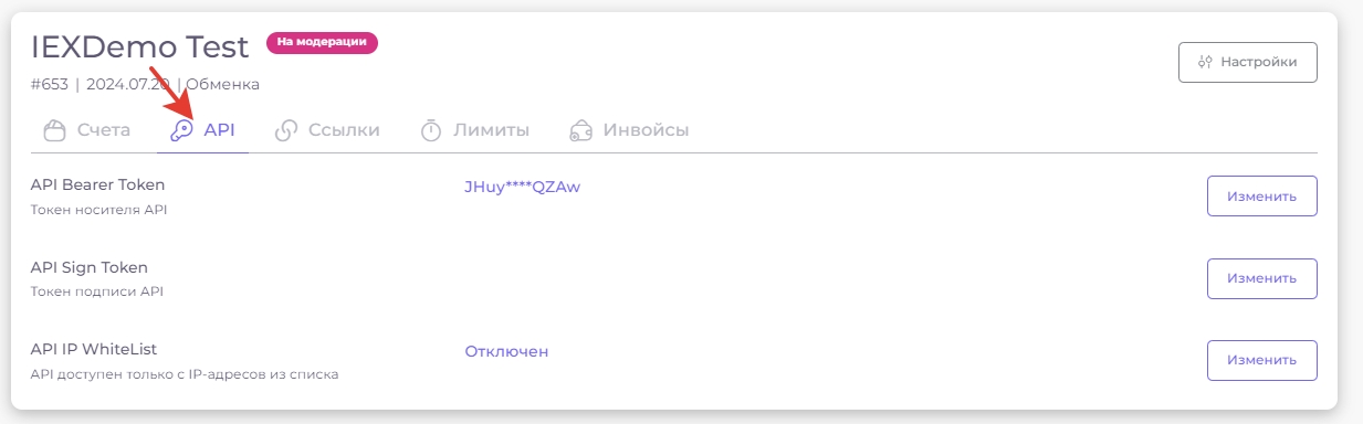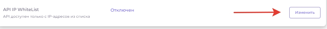 Для улучшения безопасности мерчанта, в разделе "API IP WhiteList" нажмите на "Изменить"
