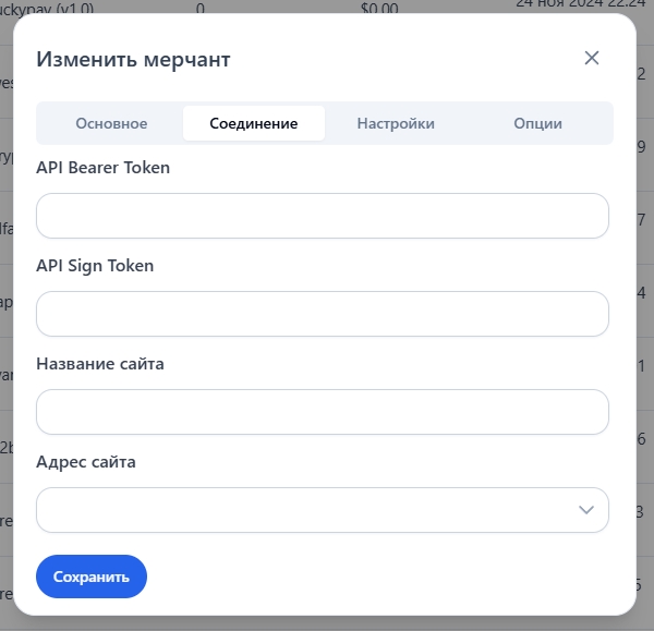 После добавления, в общем списке созданных мерчантов выберите и перейдите к редактированию нажав на название