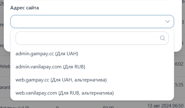 https://admin.gampay.cc — для UAH (альтернативный URL - https://web.gampay.cc)