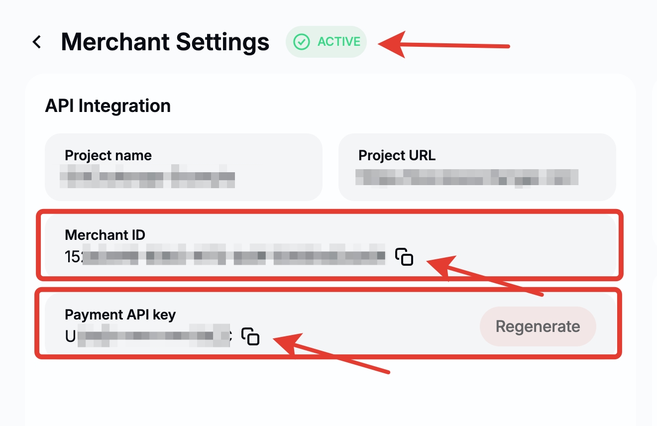 - Payment API key — Уникальный идентификатор, который также выдается при создании API ключа