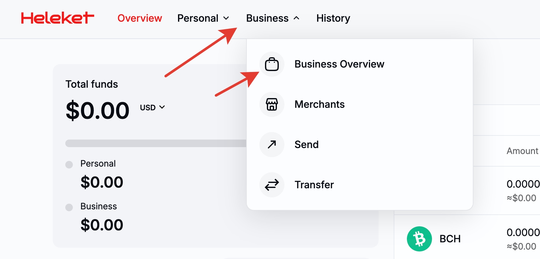 - В личном кабинете, нажмите на кнопку "Business" и выберите "Business Overview"