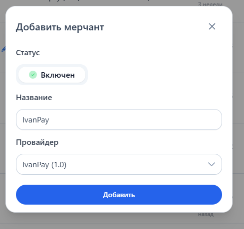 Настройка мерчанта