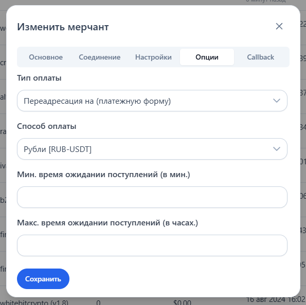 * **Мин. время ожидании поступлений (в мин.)** — Максимальное время проверки оплаты  <mark style="color:green;">**(Рекомендуемое значение: 30)**</mark>