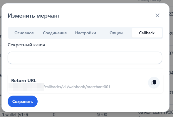 * **Return URL —** Ссылка, на которую будут приходить уведомления об успешной оплате со стороны Merchant001.
