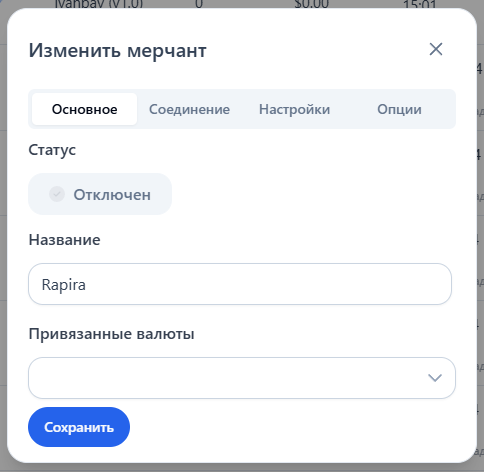 После добавления, в общем списке созданных мерчантов выберите и перейдите к редактированию нажав на название