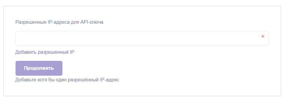 На открывшейся странице, после прохождения Двухфакторную аутентификацию, добавьте IP адреса для ключа. (IP адрес сервера).