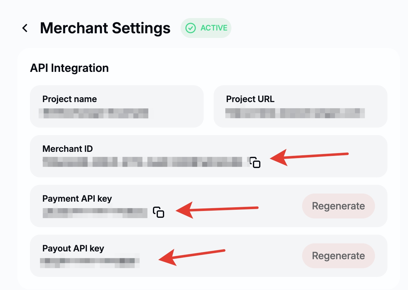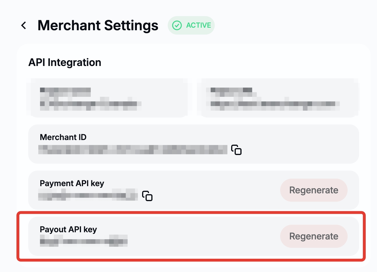 Обратите внимание, что вывод средств будет временно заблокирован (на 24 часа) после создания или перегенерации API ключа для выплаты.