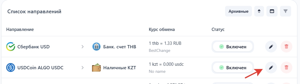 Если вы указали минимальную или максимальную границу, и текущий курс конкурента выйдет за пределы этих значений, система автоматически перестанет использовать курс этого конкурента и переключится на заранее настроенный резервный курс. Это поможет сохранить стабильность работы обменного направления.