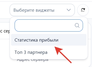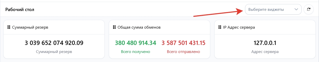 Откройте главную страницу панели управления, и нажмите на "Выберите виджеты"