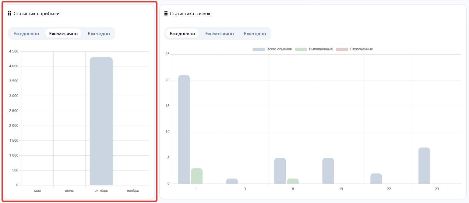 После добавления, вы получите блок прибыли с возможностью фильтрации