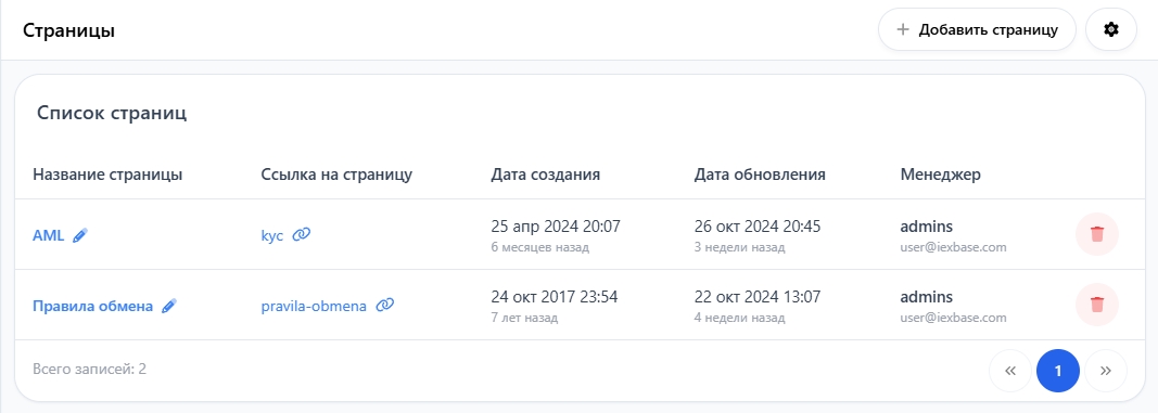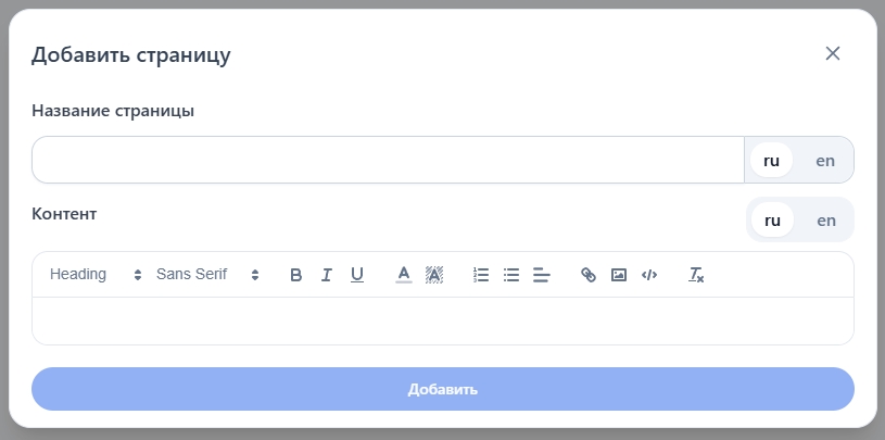 Чтобы добавить новую страницу, нажмите кнопку "Добавить страницу"