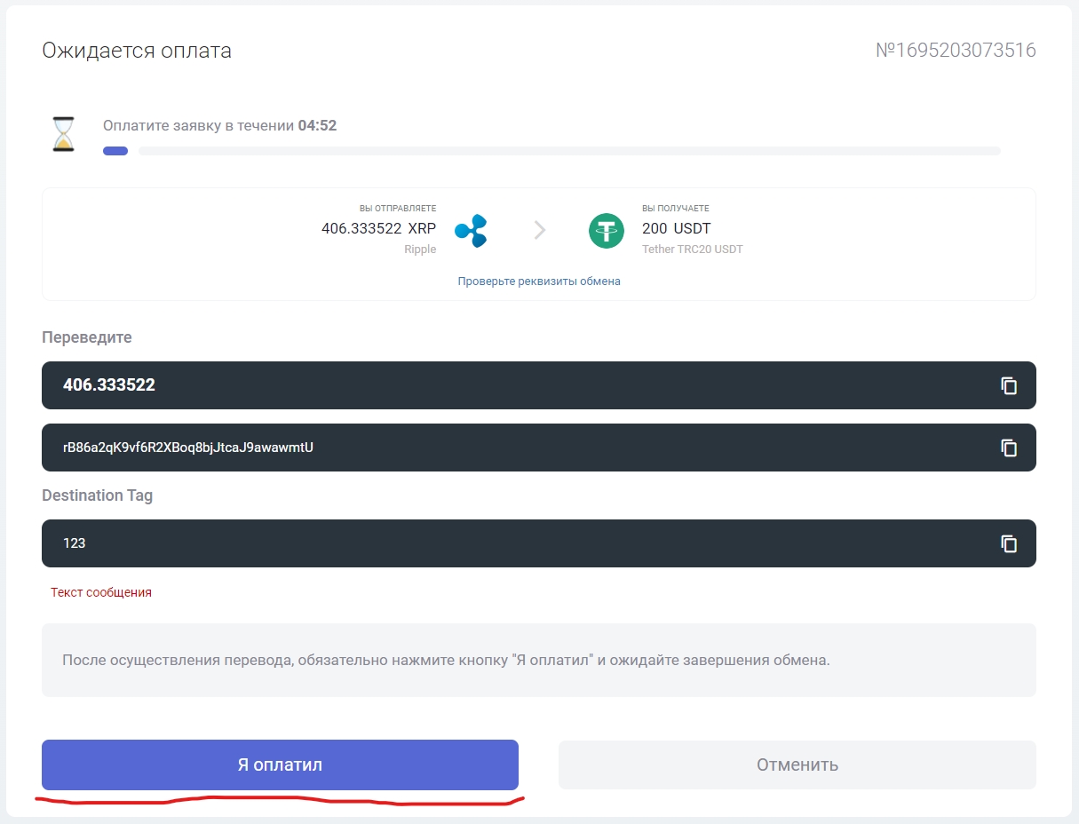 - При нажатии кнопки "Я оплатил" — сообщение в чат будет отправлено после нажатия кнопки "Я оплатил"