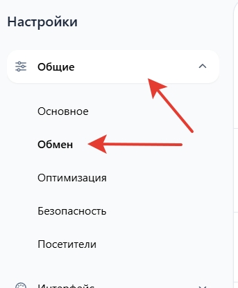 В панели управления откройте раздел "Настройки — Общие настройки".