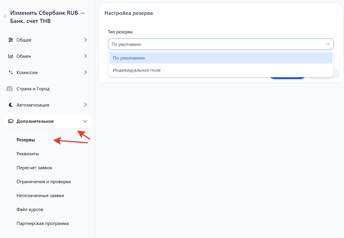 Индивидуальное поле — выбрав данный пункт, появляется поле "Поле для резерва", где можете указать резерв для конкретного направления (Резервы фиксированный)