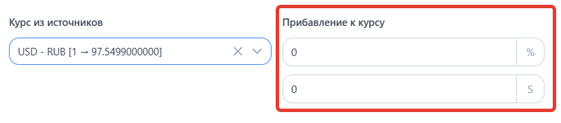 Курсы из источниковПрибавление к курсу — Этот параметр позволяет регулировать курс, полученный из внешнего источника, для вашей выгоды или конкурентоспособности.