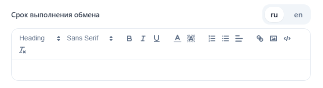 Здесь вы можете указать или изменить инструкции для пользователей, включая срок выполнения обмена, инструкцию по оплате и описание обменной операции.
