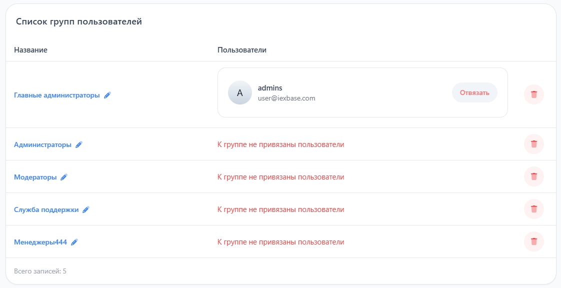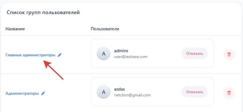 В данном разделе вы можете добавлять и редактировать новые и существующие группы пользователей.