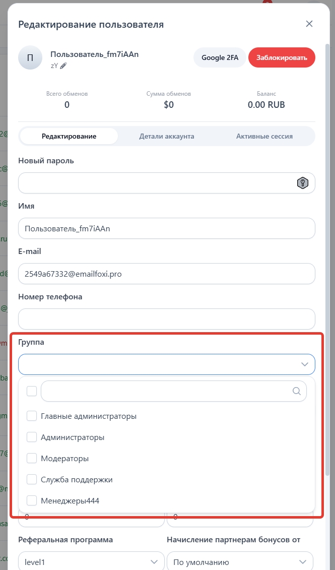 Разделение группы «Менеджеры» для работы с партнёрами и маркетинговыми функциями.
