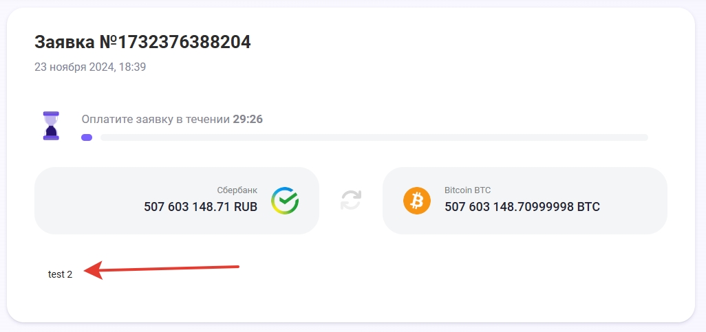 В разделе "Общее — Информация" найдите "Текст в процессе оплаты (отдаю)" и "Текст в процессе оплаты (получаю)" добавьте информацию.