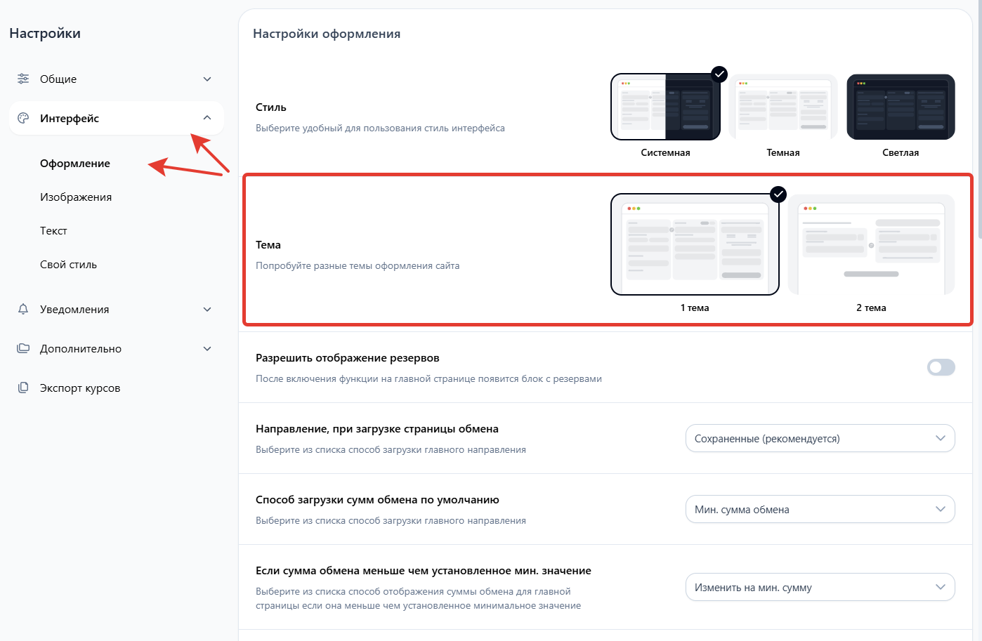 Настройка направления и суммы обмена по умолчаниюПредыдущаяНастройка текстовых элементов интерфейсаСледующаяЦветовая палитра и стили оформления сайта